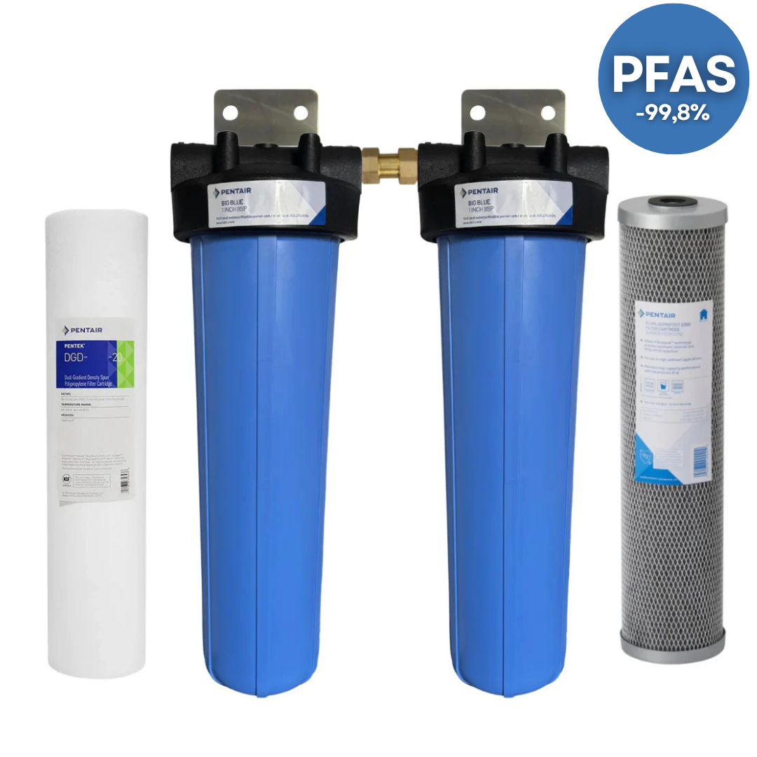 Filtret sitter i krypgrunden under vår sommarstuga i en isolerad inneslutning tillsammans med en frostvakt. Just nu är det -4° C ute, +2° C i krypgrunden och +9° i inneslutningen. Vi är mycket nöjda eftersom all missfärgning och dålig lukt har försvunnit!