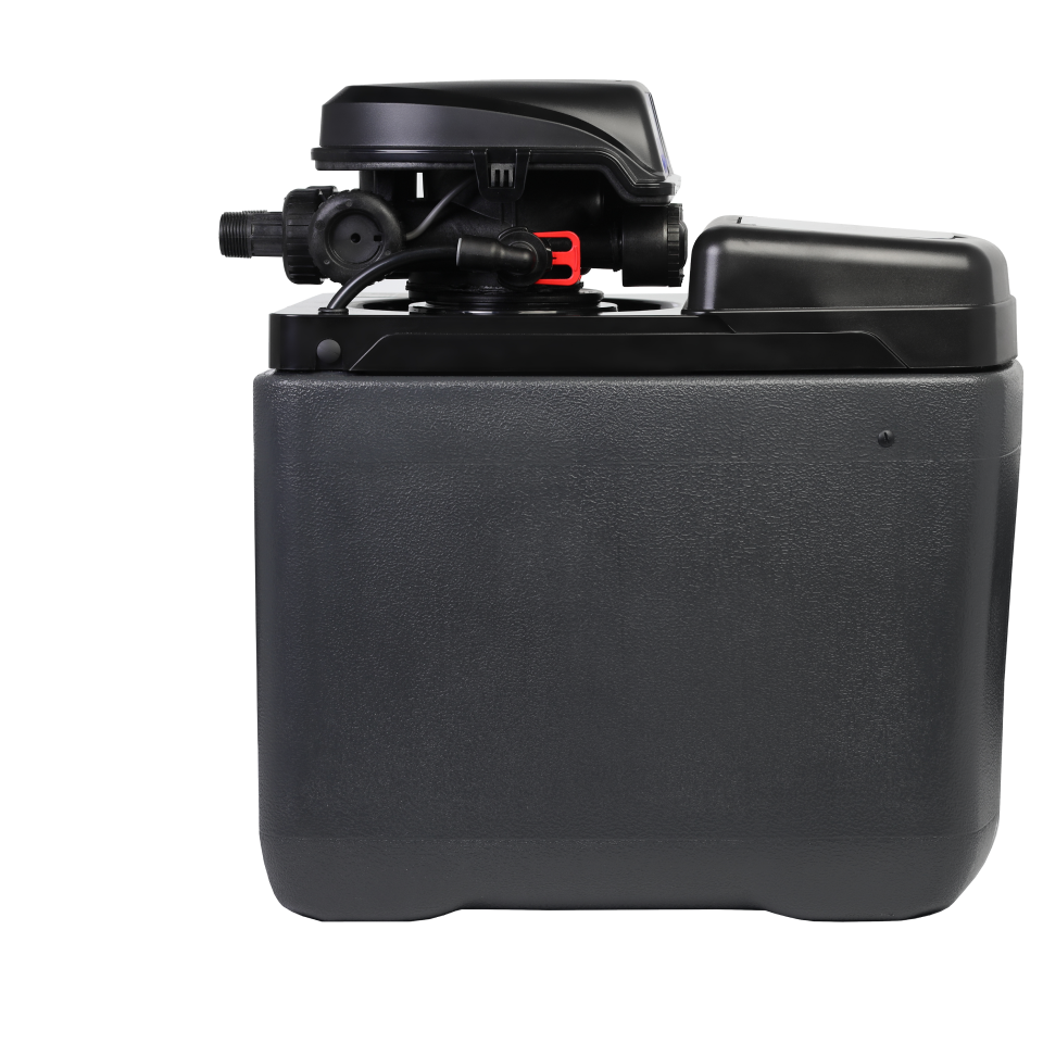 Utrustad med Clack® DV som mäter förbrukningen och startar regenerering när kapaciteten är nådd. Inbyggd blandningsventil för justerbar mjukhetsgrad.